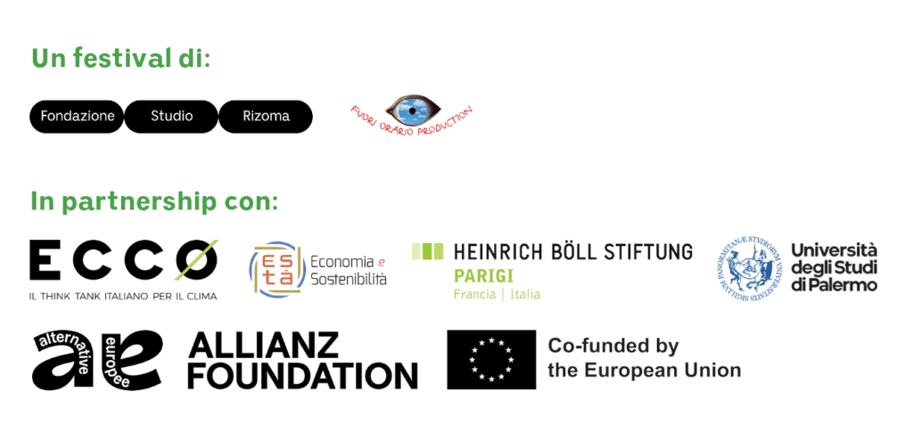 Il Festival è promosso da Fondazione Studio Rizoma e Fuori Orario Production con ECCO Think Tank, EStà – Economia e Sostenibilità, Fondazione Heinrich Böll e Università di Palermo.